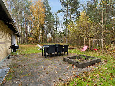 Den store have inviterer til leg og udendørs aktiviteter for både børn og voksne. Her er masser af plads til boldspil, grillhygge eller afslapning i solen.