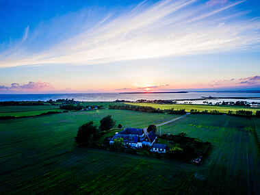 Vores gård ligger omkring 600 m fra Lille Bælt i udkanten af et naturreservat for havfugle med en fantastisk udsigt over havet og færgehavnen Bøjden. Her kan du være på ferie i naturlige omgivelser væk fra den almindelige turist ferie og tage en pause fra hverdagens stress og jag.