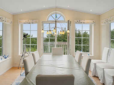 Her er hyggeligt, ejer har med sin indretning af huset gjort sit til at du her kan nyde din ferie. Lyse farver og stilfuld indretning møder dig overalt. Der er 2 stuer, den ene er indrettet til afslapning, den finder du i stueplan og der er udgang til terrassen herfra, den anden er på 1. salen og er det helt naturlige sted for familien at samles i det hyggelige sofahjørne. I stueplan er der 3 rummelige soveværelser, alle med dobbeltsenge og 2 af dem har adgang til terrassen. På 1. salen er der et soveværelse med 2 enkeltsenge. I stueplan er der et rummeligt og godt indrettet badeværelse med spabad, og på 1.salen er der bad og toilet. Køkkenet er på 1. salen, herfra er der en smuk udsigt over området. Spiseområdet er lyst, rummeligt og med en udsigt over Østersøen, et fantastisk sted at nyde dagens måltider. I huse findes et ventilationsanlæg som gør at de er et godt indeklima i huse. Et rigtig godt hus til en venne- eller familieferie.