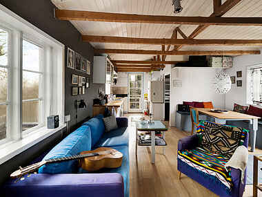 Sommerhuset byder plads til 5 personer fordelt på 2 værelser med 1 dobbeltseng, 1 enkeltseng samt 1 køjesenge. Huset er hyggeligt indrettet med fine træbjælker i loftet, hvidmalede træpaneler, komfortable møbler og masser af sjæl og sommerhushygge. Husets centrale rum består af køkken med bl.a. køleskab, ovn, kogeplader, elkedel og opvaskemaskine samt et dejligt opholdsafdeling med spisebord, sofaområde og Tv. Her er der plads til hygge og masser af gode familiestunder.