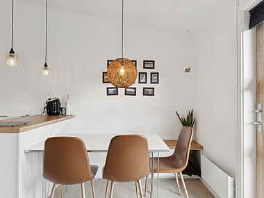 Lejligheden ligger fredeligt placeret i naturskønne omgivelser nær Dueodde Strand – en af Bornholms mest populære badestrande. Her er kun 200 meter til vandet, hvilket gør det nemt at tage en dukkert eller gå en tur langs kysten.