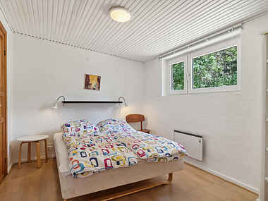 Husets naturlige samlingspunkt er den kombinerede opholds- og spisestue med store vinduer, der giver et dejligt lysindfald og udsyn til de grønne omgivelser. Her kan I se fjernsyn, høre radio eller musik, spille spil eller bare hyggesnakke. Om vinteren kan I nyde varmen og den hyggelige atmosfære fra brændeovnen. I det åbne, veludstyrede køkken med gulvvarme er det en fornøjelse at tilberede dejlige feriemåltider. Der er også behagelig gulvvarme på både badeværelset og gæstetoilettet, og førstnævnte har også en sauna – perfekt til ferieafslapning.