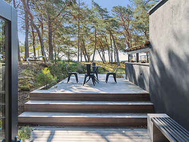 Sommerhuset er perfekt placeret tæt på stranden, kun 50 meter fra vandet. Her kan I nyde de rolige omgivelser og lytte til bølgerne, mens I slapper af på terrassen eller udforsker de nærliggende stier.