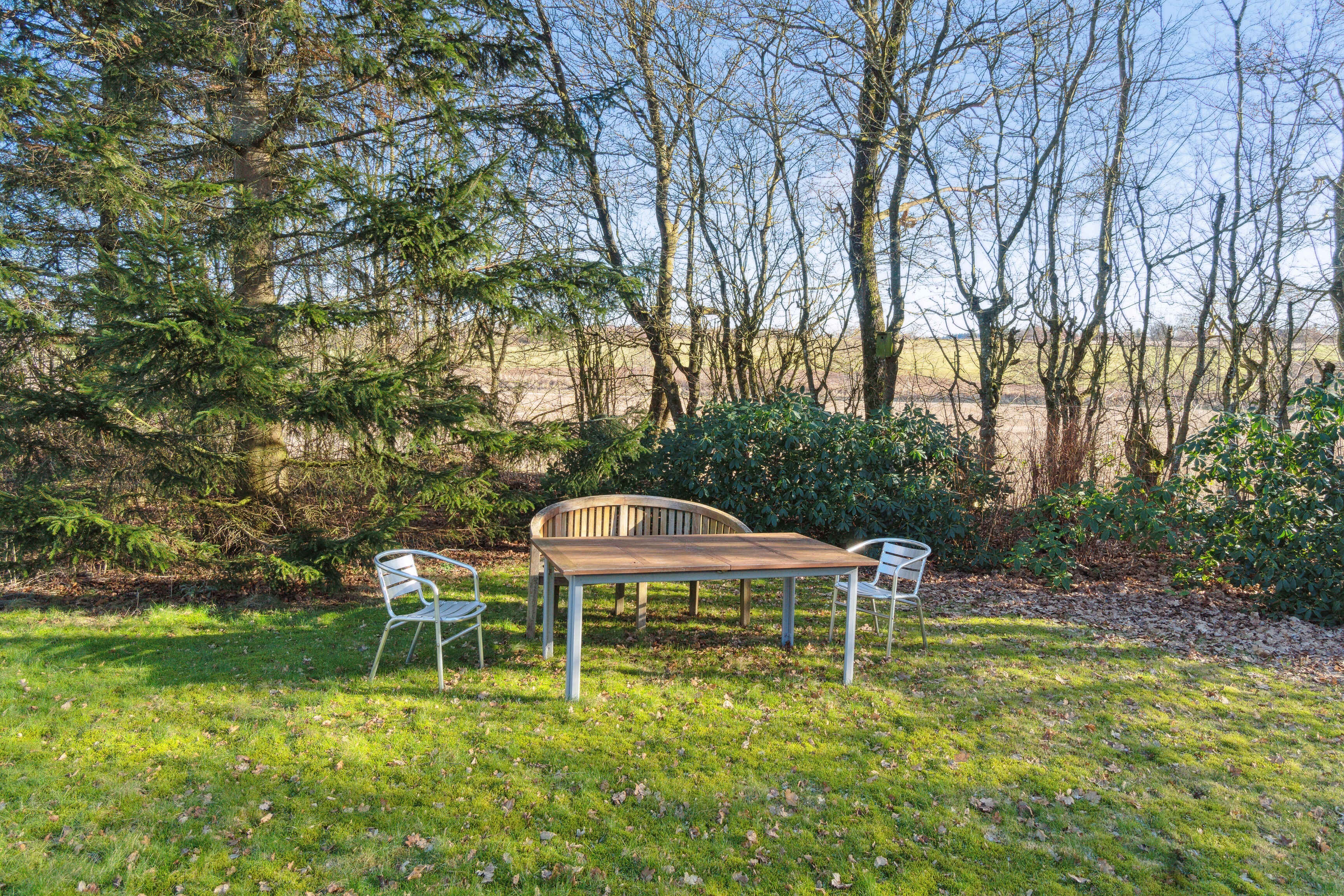 Udendørsområdet indbyder til leg og afslapning med masser af plads omkring huset. Her kan børnene boltre sig, mens de voksne nyder roen på terrassen.
