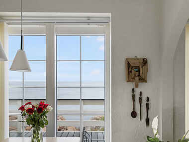 Midt i den uspolerede skønhed af Nordbornholms klippekyst står denne unikke lejlighed. En ægte perle, der kombinerer moderne komfort med en fortryllende beliggenhed. Med sine imponerende 41 kvm balkonterrasser, indhyller lejligheden dig i et hav af solskinstimer, der strækker sig hele dagen lang. Fra disse private oaser kan du nyde en uforglemmelig panoramaudsigt, der spænder langs kysten fra Hammerknuden til din venstre side til Gudhjem til din højre, med synet af Christiansø lige forude.