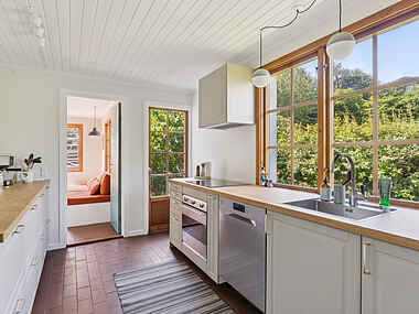 Sommerhuset ligger i et område, hvor det er let at finde både ro og oplevelser. Man bor tæt på små butikker, caféer og kulturtilbud, samtidig med at naturen starter lige uden for døren.