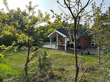 Til huset hører en 90 m2 stor, solrig, delvist overdækket og ugenert træterrasse med forskellige havemøbler – bl.a. liggestole til solbadning – samt en grill og godt udekøkken, så I kan tilberede lækre feriemåltider. Jeres børn vil elske legetårnet med gynger og rutsjebane. I kan parkere jeres bil i carporten, hvor der er mulighed for opladning af elbil.