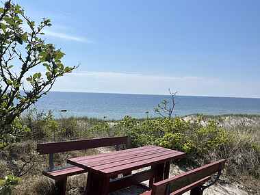 Kun 300 meter væk finder du en virkelig lækker sandstrand med optimale bademuligheder. Her kan du nyde solen, bade i det klare vand eller tage en afslappende gåtur langs kysten.