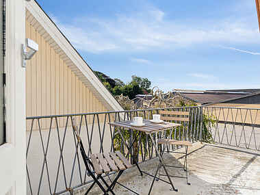Huset er omgivet af en indhegnet have, der giver tryghed, hvis børn eller hunde er med på ferien. Udenfor kan du opleve masser af dyreliv tæt på og nyde stilheden i området. Haven og soveværelses balkonen har en dejlig udsigt over markerne