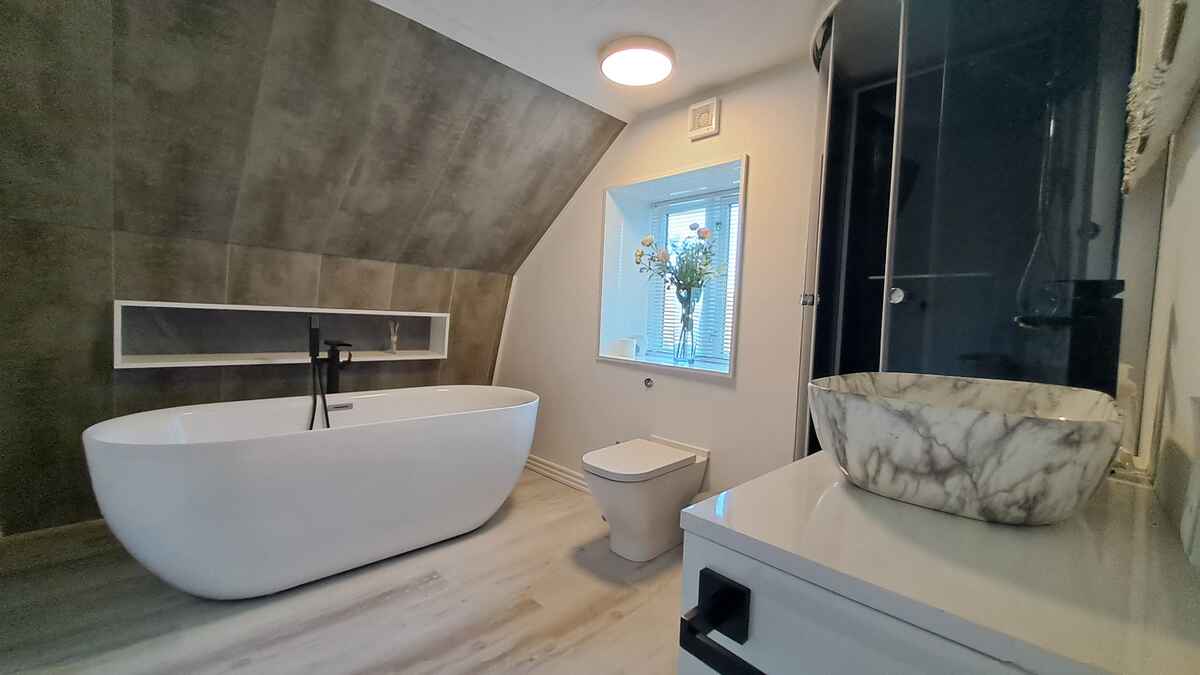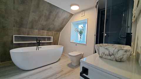 Dette nyrenoverede sommerhus fra 2024 tilbyder 140 m² fordelt på tre soveværelser med i alt syv sengepladser.