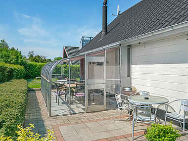 Dette sommerhus på 94 m² rummer tre soveværelser med plads til syv gæster. Huset har flere terrasser, hvoraf en på førstesalen giver udsigt til vandet. Kun 200 meter væk venter stranden, mens den grønne grund giver mulighed for samvær og leg.