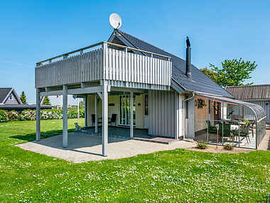 Dette sommerhus på 94 m² rummer tre soveværelser med plads til syv gæster. Huset har flere terrasser, hvoraf en på førstesalen giver udsigt til vandet. Kun 200 meter væk venter stranden, mens den grønne grund giver mulighed for samvær og leg.