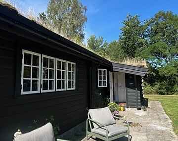 Nyd solen i haven med havemøbler, grill, hængekøjer og havespil eller overnat i det nye shelter.