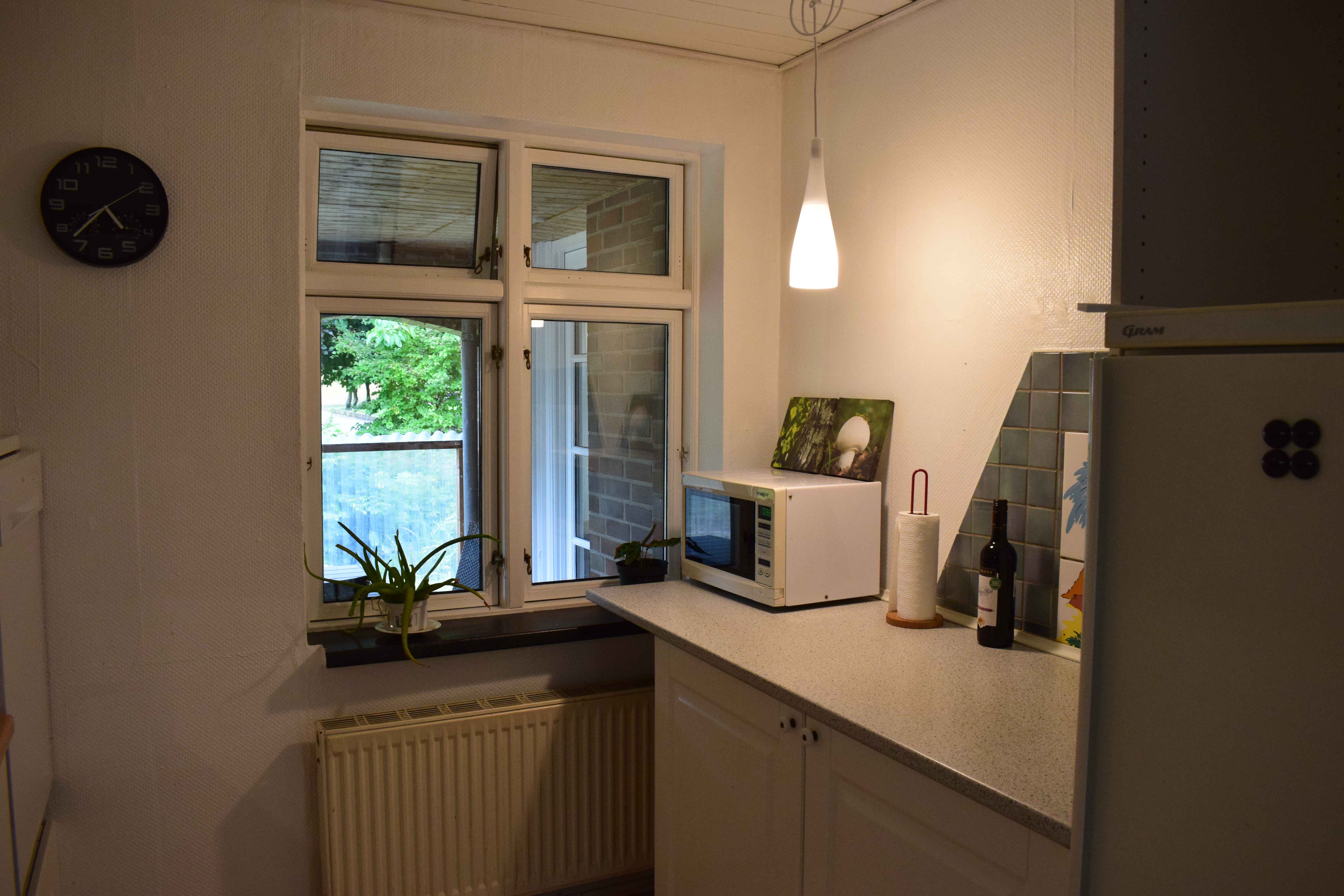 Køkkenet er fuldt udstyret med alt det nødvendige til nem feriemadlavning: komfur, ovn, mikroovn, opvaskemaskine, kaffemaskine, elkedel og service til fem personer.