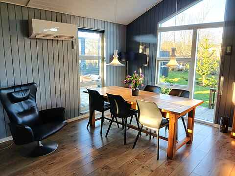 Velkommen til ferieboligen på 91 m² — et lyst velindrettet sommerhus med plads til seks personer fordelt på tre soveværelser. Her får I både et køkken- og opholdsrum samlet i ét, hyggelige aftenstunder med brændeovn, og adgang til en privat terrasse hvor grill og sommerhimmel føles helt naturligt.