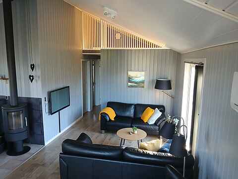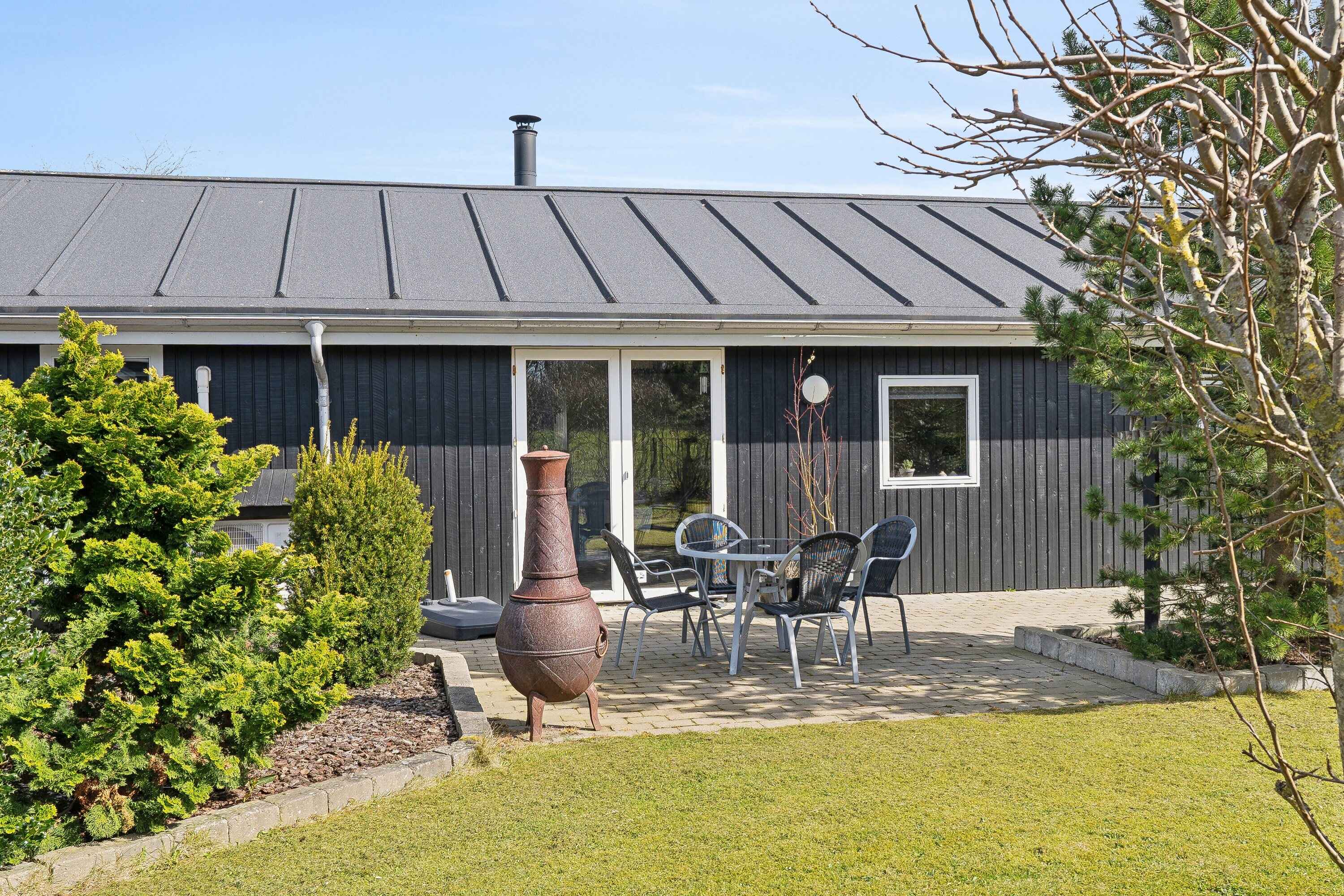 Velkommen til ferieboligen på 91 m² — et lyst velindrettet sommerhus med plads til seks personer fordelt på tre soveværelser. Her får I både et køkken- og opholdsrum samlet i ét, hyggelige aftenstunder med brændeovn, og adgang til en privat terrasse hvor grill og sommerhimmel føles helt naturligt.