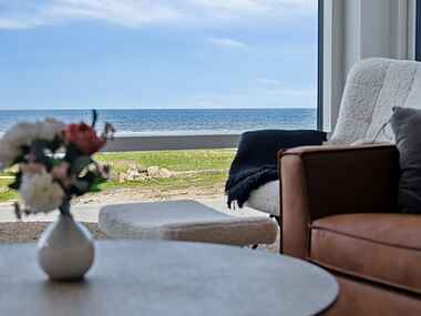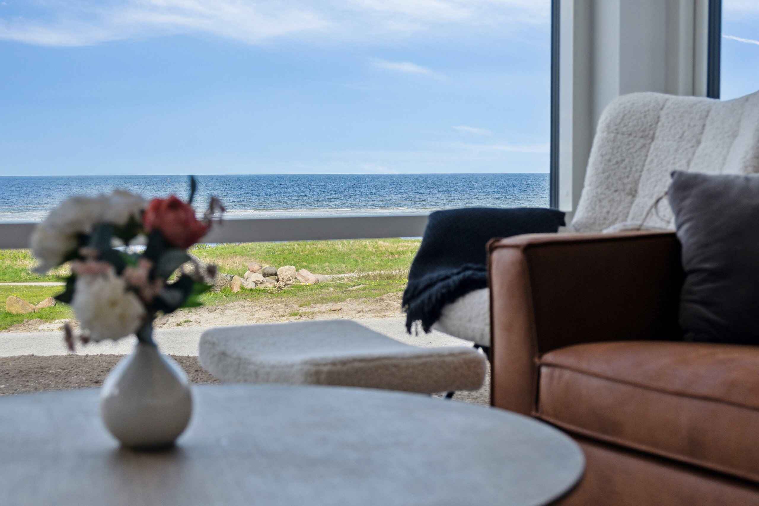 Helt ud til vandet ligger dette 120 m² sommerhus fra 2023, hvor udsigten er en del af hverdagen. Havet er det første, man ser, når man træder ind, og store vinduespartier trækker lyset og kystlandskabet helt ind i boligen.