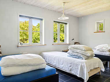 De to store soveværelser giver i alt seks sovepladser. Huset har brede døre, herunder indgangsdøren, og er velegnet til kørestolsbrugere. Der er gulvvarme i hele huset via jordvarme, gratis internet samt tv-boks med 25 kanaler, hvoraf mindst to er tyske.