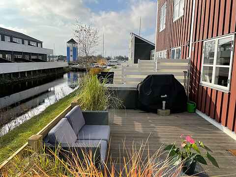 Udenfor giver terrassen gode muligheder for udeliv med loungemøbler, hynder og grill. Der kan bestilles babyudstyr, og huset har tv-pakke, Chromecast og wifi. I feriebyen er der desuden ladestandere til elbiler.