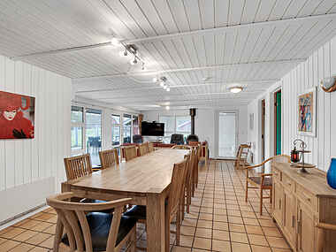 Huset er indrettet med et køkken, der ligger i åben forbindelse med stuen, og fra stuen kan I følge med i aktiviteterne i swimmingpoolen samt spabadet. I stuen er der både en energivenlig varmepumpe og en brændeovn, som I kan benytte på de kølige aftener og dage. Hertil tilbyder huset 6 komfortable værelser og har plads til i alt 12 personer.