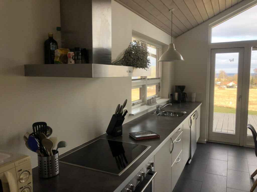 Køkkenet er udstyret med 1 køleskab. Der er 4 keramiske kogeplader, varmluftovn, mikrobølgeovn samt opvaskemaskine.