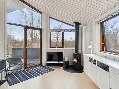 Huset har en funktionel indretning med et åbent køkken og opholdsområde, der skaber et indbydende miljø til hyggelige aftener. Brændeovnen gør opholdet særligt behageligt, når mørket falder på.