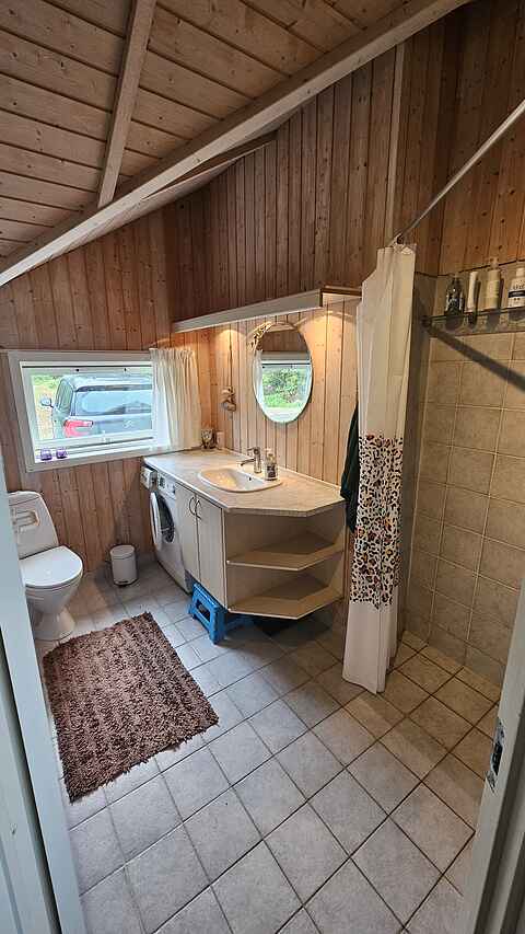 Huset har et praktisk køkken med opvaskemaskine og en vaskemaskine til feriens behov. Badeværelset suppleres af en udendørsbruser – perfekt efter en tur på stranden. Husdyr er velkomne, men grunden er ikke indhegnet.