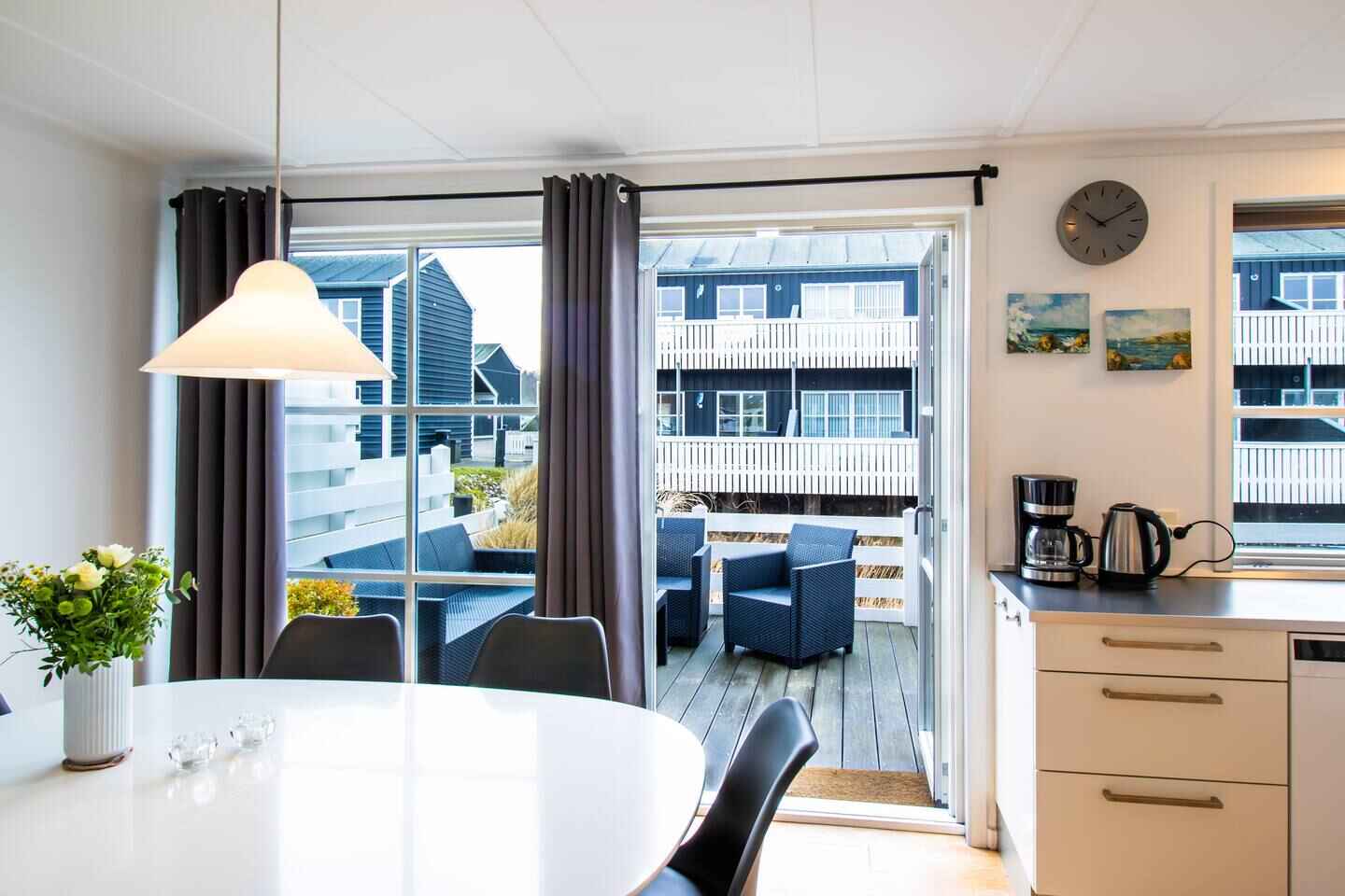 Udenfor giver terrassen gode muligheder for udeliv med loungemøbler, hynder og grill. Der kan bestilles babyudstyr, og huset har tv-pakke, Chromecast og wifi. I feriebyen er der desuden ladestandere til elbiler.