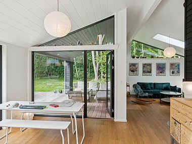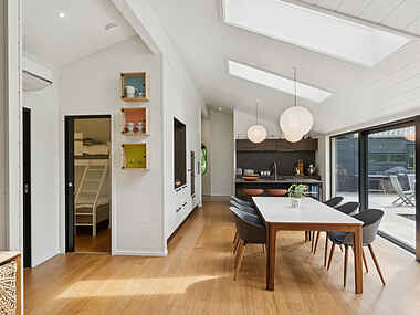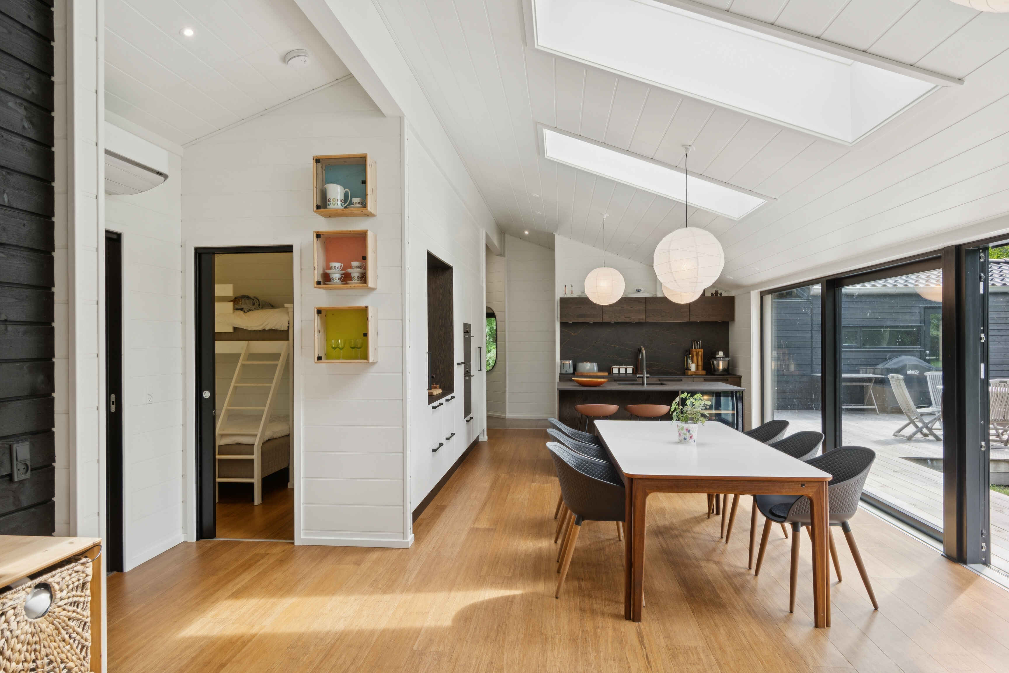 Dette sommerhus på 145 m² giver plads til både store og små ferieselskaber. Med fem soveværelser og ti sengepladser er her god plads til familier eller venner, der ønsker at tilbringe ferien sammen. Tre værelser ligger i hovedhuset, mens annekset rummer et ekstra.
