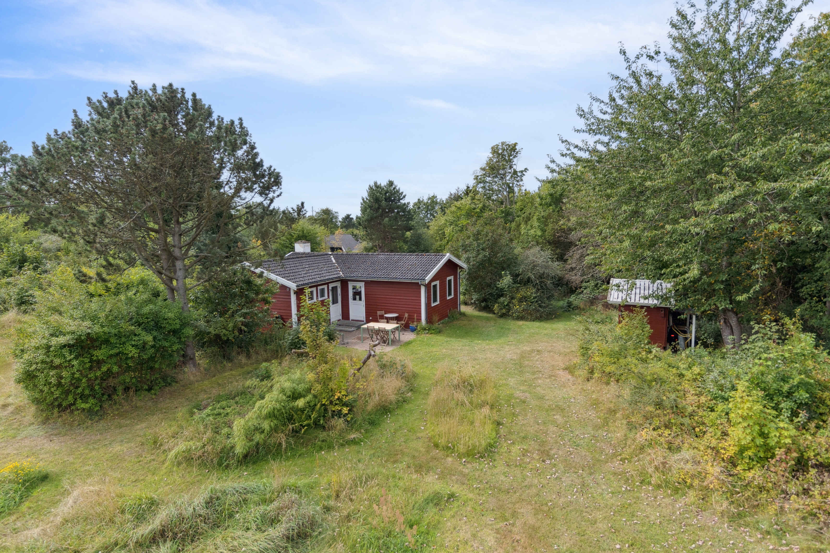 Boligen er placeret på en 2500 m² stor naturgrund, hvor man kan være helt uforstyrret. Grunden indbyder til leg, spil og afslapning under åben himmel, og om aftenen kan man rykke indenfor og nyde film på husets projektor (Google-TV), der giver en hyggelig hjemmebio-stemning.