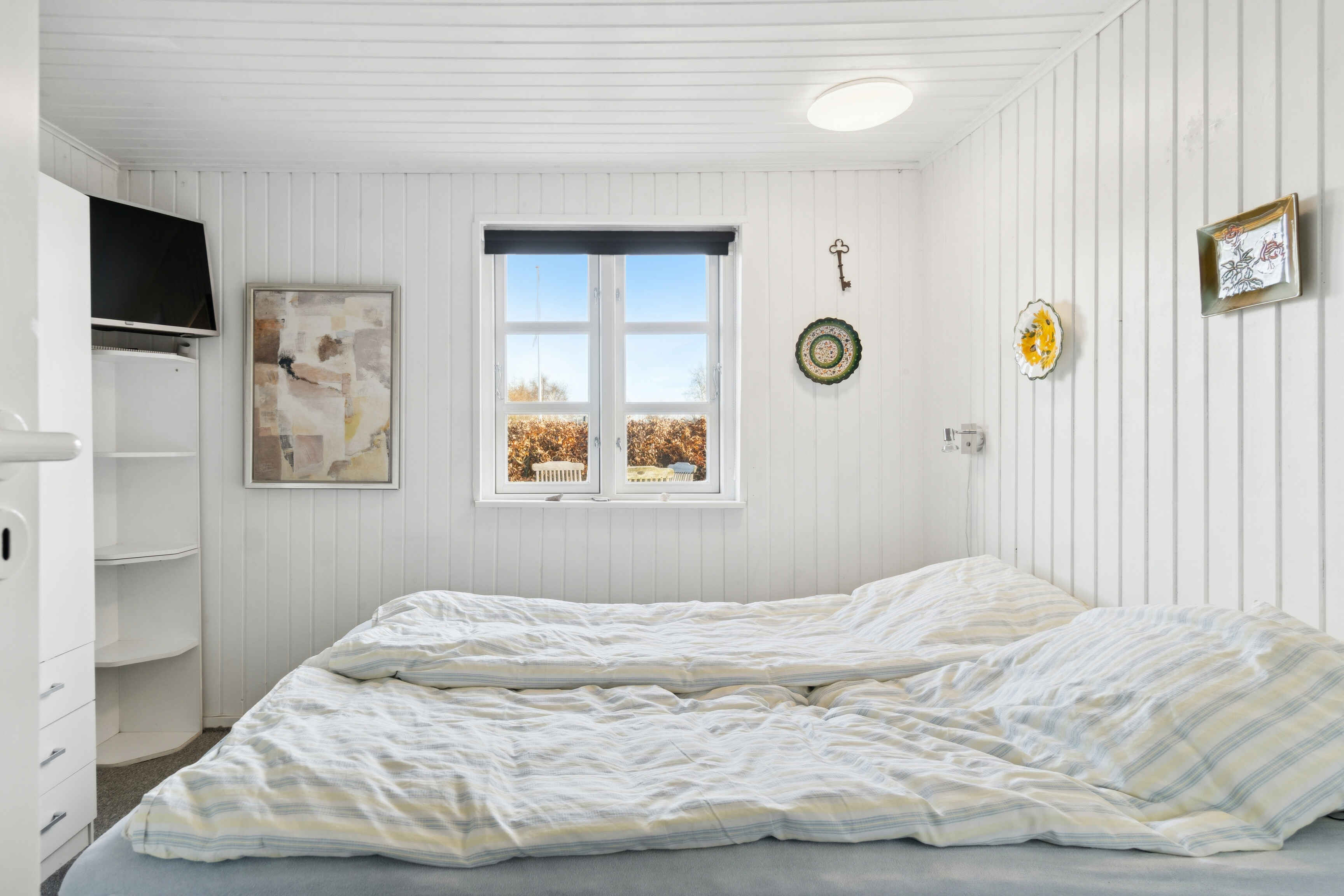 Det klassiske sommerhus på 90 m² giver en rolig ramme om ferien. Det hyggelige køkkenalrum samler alle til måltider og samvær, mens sofasektionen indbyder til afslapning foran brændeovnen på kølige dage. Indretningen er enkel, lys og rar at opholde sig i.