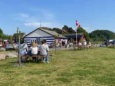 Der er kun et par hundrede meter til vandet og havnen. “Høkeren” på havnen er en af Møns bedste caféer med lækkert udvalg af mønske specialiteter. Se åbningstider på høkerens insta: haarboellehavnehoeker