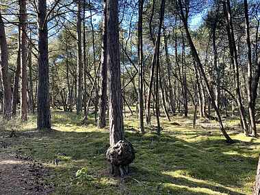 Fra stuen og terrassen er der udsigt over skoven, hvor stier fører jer rundt i områdets varierede terræn.