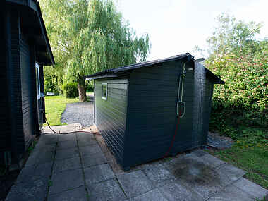 Udenfor lokker den grønne græsplæne til leg, mens et bålsted med brænde inviterer til hyggelige aftener. Kort herfra finder du Kisserup Strand. Den børnevenlige kyst er kompletteret med en lang badebro om sommeren.