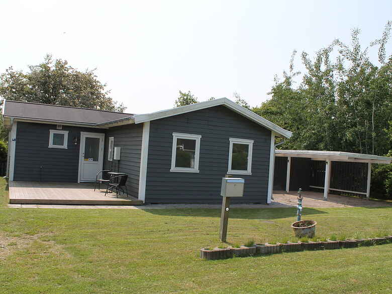 Huset er på 81 kvm. og er indrettet med 2 værelser, (et med folde-ud seng til 1 eller 2 personer og et med en seng der kan deles til to enkelte eller som dobbeltseng), soveværelse (med dobbeltseng samt barneseng og pusleplads), køkken-alrum med 3 og 2 lædersofa og stol, spisehjørne, brændeovn (husk brænde), varmepumpe, TV og Chromecast samt udgang til overdækket terrasse og træterrasse. I køkkenet forefindes opvaskemaskine.