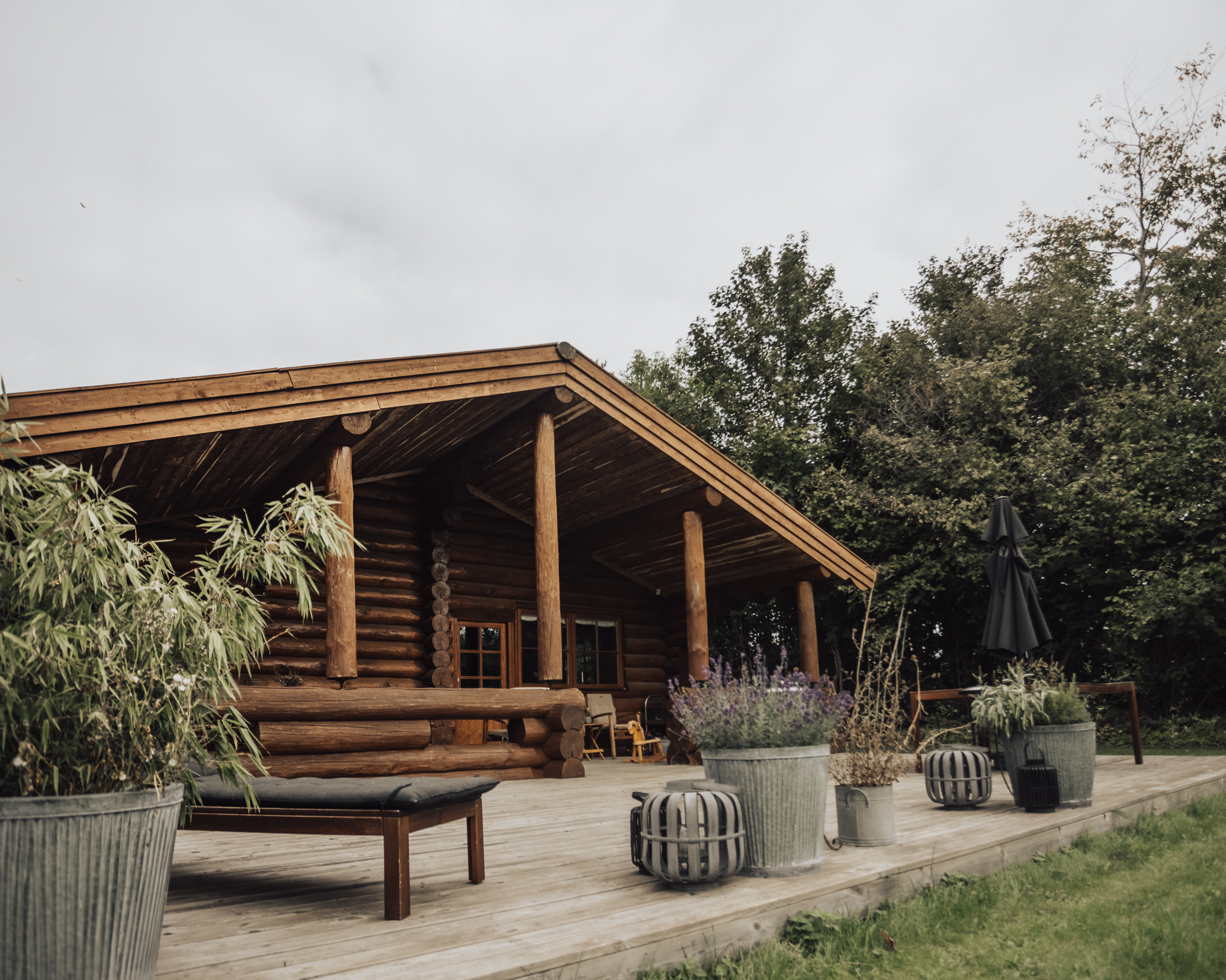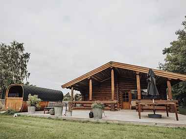 Dette hus er ikke bare en bolig, det er en sand hyldest til ægte træhåndværk, hvor massive bjælker udstråler autenticitet både indvendigt og udvendigt.