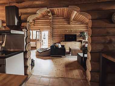 Dette hus er ikke bare en bolig, det er en sand hyldest til ægte træhåndværk, hvor massive bjælker udstråler autenticitet både indvendigt og udvendigt.