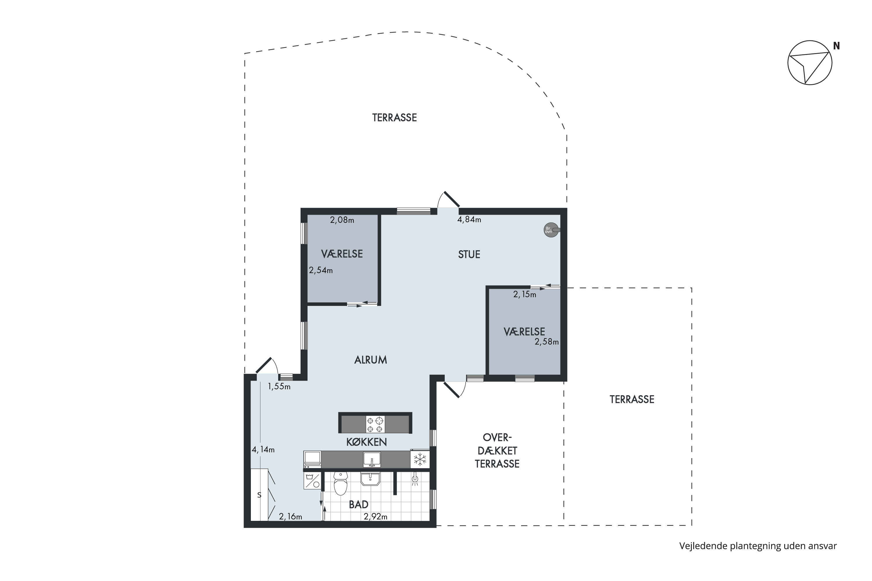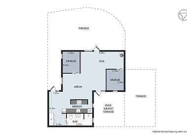 Den private terrasse er delvist overdækket, og det er muligt at lukke den overdækkede terrasse helt af, hvis vejret er til den kolde side.
