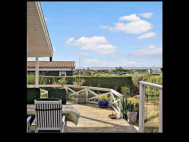 Dette 72 m² sommerhus byder på tre soveværelser, hems og en terrasse mod vandet med udsigt til havet. Boligen har seks sovepladser fordelt på soverum og hems. Indendørs er der lyst opholdsområde, simple møbler og et veludstyret køkken til fælles måltider.