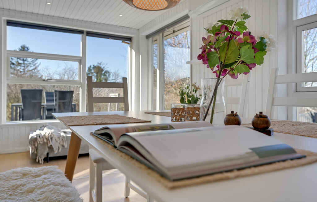 Huset rummer 3 soveværelser med i alt 6 sovepladser, badeværelse samt et åbent opholdsrum med stue og køkken i ét. Alrummet er husets samlingspunkt, hvor I kan spise, spille og slappe af med udgang til den omkransende terrasse.