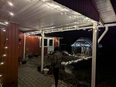 Udenfor finder du en privat baghave, hvor du kan slappe af i fred og ro. Området er perfekt til både afslapning og udendørs aktiviteter.