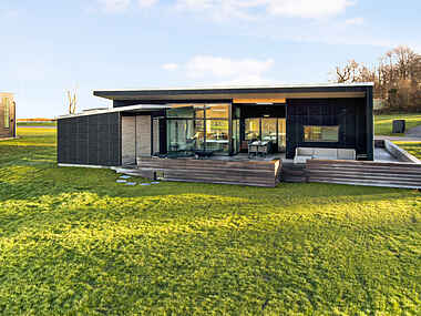 Glæd dig til at holde ferie i dette nye og topmoderne sommerhus lige ned til Genner Bugten.