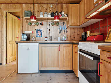 Huset er personligt indrettet med en hyggelig atmosfære. Stuen er lys og indbydende, og det åbne køkken gør det nemt at samles om madlavning og måltider.