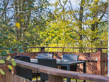 Fritidshuset ligger på en stor, naturskøn grund på 1.109 m2 med en hævet terrasse, hvor I kan nyde udsigten over den kuperede natur. Haven er let at vedligeholde, og de tilhørende udhuse gør det nemt at opbevare strandudstyr eller cykler.