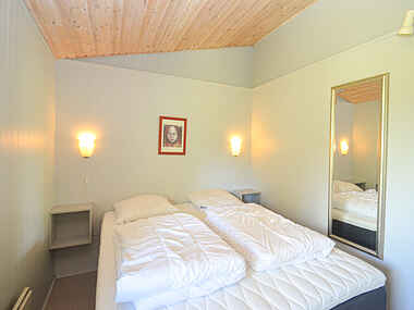 Huset har 3 soveværelser med i alt 5 sovepladser: 1 med dobbeltsenge, 1 med enkeltseng og 1 med køjeseng. Derudover er der to badeværelser med bruseniche, hvilket giver god komfort for flere gæster.