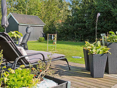 Huset ligger 1000 meter fra vandet, og i haven kan du nyde solen på solvognene, grille på gasgrillen eller hygge dig i loungeområdet. Varmepumpe og brændeovn sikrer et behageligt indeklima året rundt.