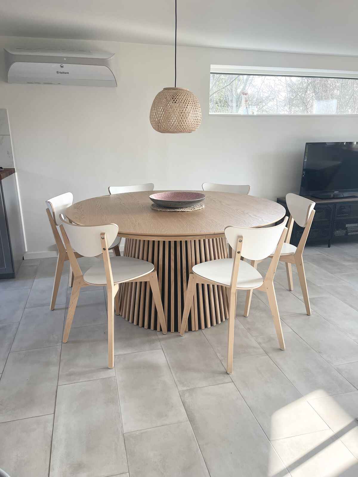 I huset er der køkken med bl.a. nespressomaskine og i forlængelse af køkkenet finder I stor spiseplads og hyggelig stue, der er samlingspunktet i sommerhuset.