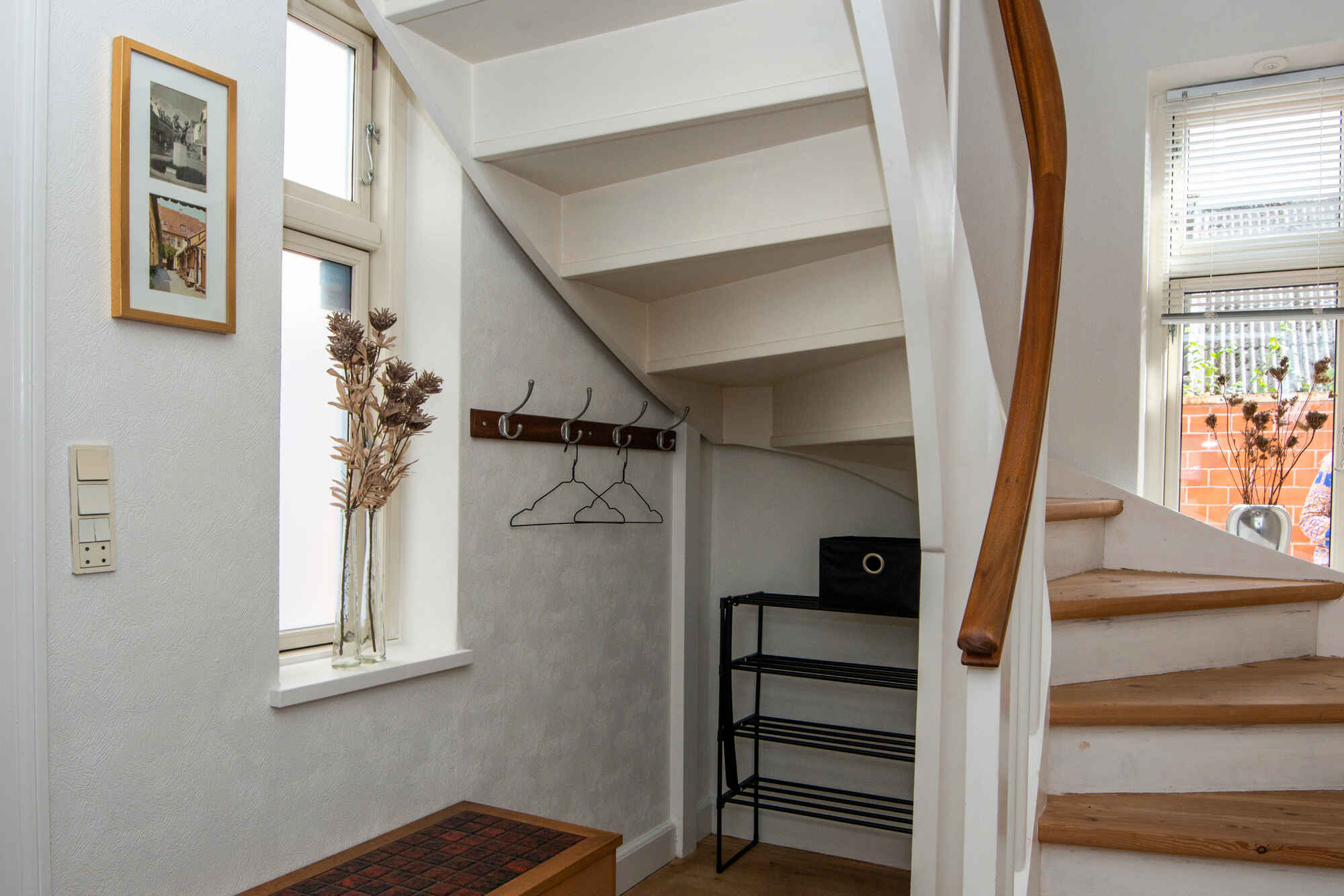 Udendørs kan I nyde en dejlig flisebelagt, lukket gårdhave, der kan agere jeres solrige samlingssted i de varme sommermåneder ( med grill) . Grunden er lukket med gitterport. Desuden baghus med vaskemaskine og tørrestativ, samt en opvaskemaskine.