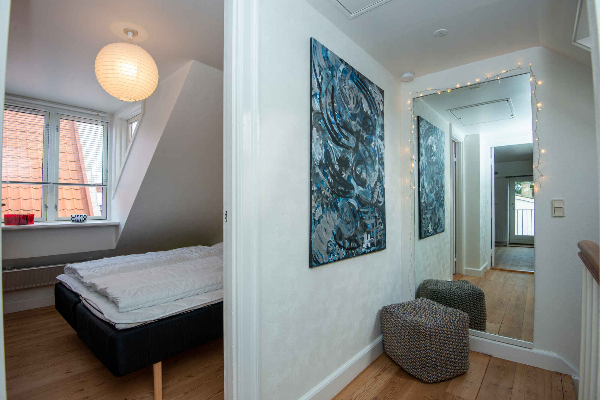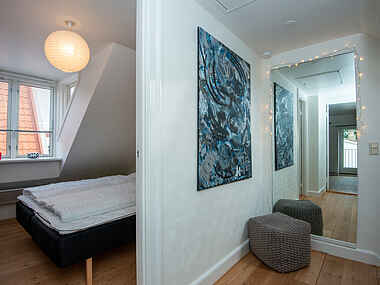 1 sal er indrettet med gang med alkove med daybed, 2 værelser, 1 værelse med dobbeltseng (140 x 200 cm), 1 værelse med dobbeltseng (160 x200 cm) og daybed.
