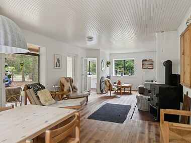 Indenfor mødes du af et nyt køkken med plads til store armbevægelser og fælles madprojekter, samt et nyt badeværelse med gulvvarme, der emmer af velvære. I stuen skaber den nye brændeovn varme og atmosfære på kølige dage, mens varmepumpen sørger for et behageligt indeklima året rundt.